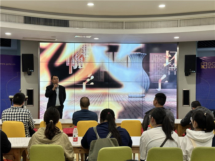 高淳陶瓷股份有限公司副總經(jīng)理周玉明為陶研青年們介紹高淳陶瓷相關(guān)情況,并觀看高淳陶瓷介紹片。